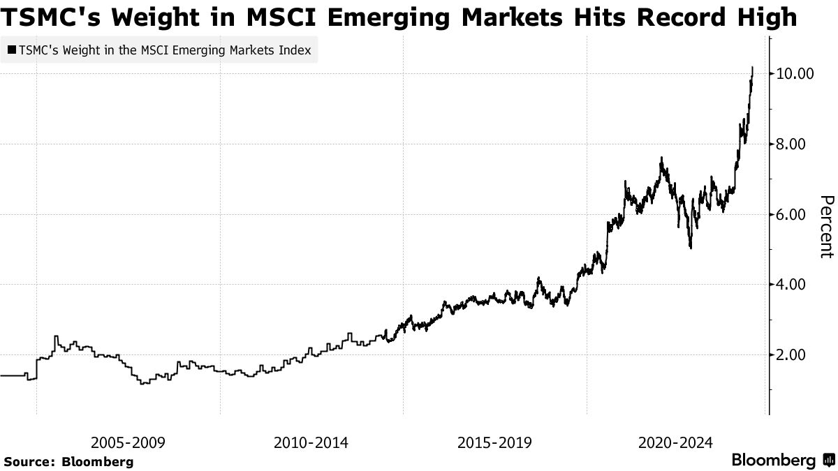 根据彭博计算,其市值现在远远超过MSCI公司新兴市场中所有拉丁美洲公司的总和,后者是全球基金追踪的基准之一。