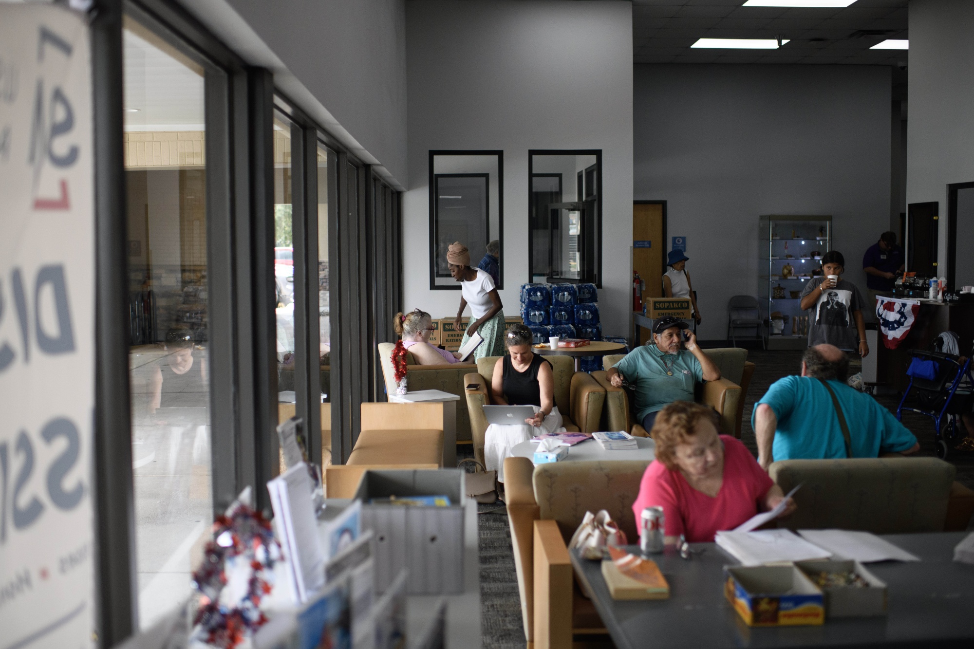 休斯顿的飓风贝丽尔过后,居民在社区中心降温和充电,时间是7月10日。摄影师:Mark Felix/Bloomberg“没有餐馆开门,所有商店都关门——每个人仍在挣扎,”Aslam谈到了她在休斯顿西区的社区。“我在这里是全新的:这是我在休斯顿经历的第一次风暴,”她说,“在泰国不会是这样的。”