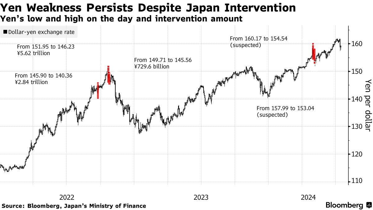 日本最后一次被怀疑干预汇率是在4月29日至5月2日之间,但它花了将近三个月的时间来抹去涨幅并走弱至新低。