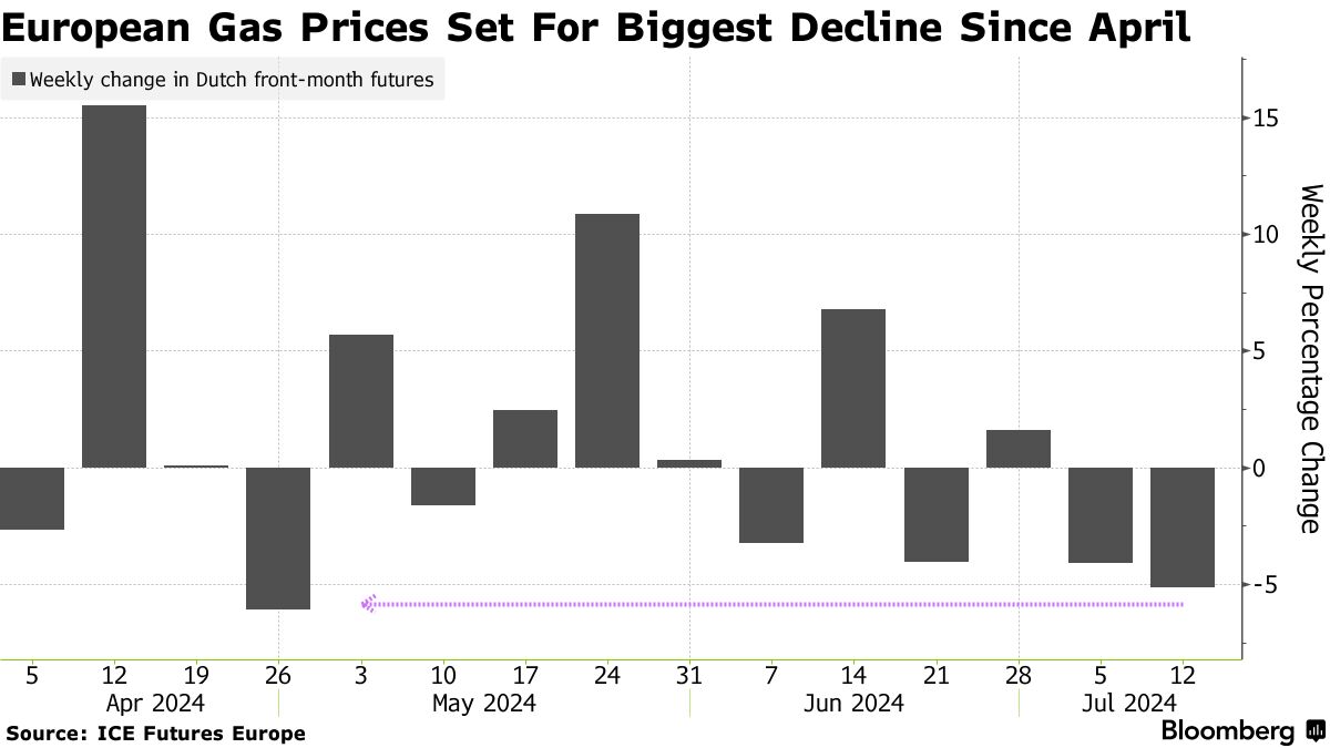 自周一以来,基准期货价格已下跌约6%,即使合同在周五有所波动。这是自4月以来的最大周度跌幅,当时交易商刚开始在下一个冬季之前重建库存。