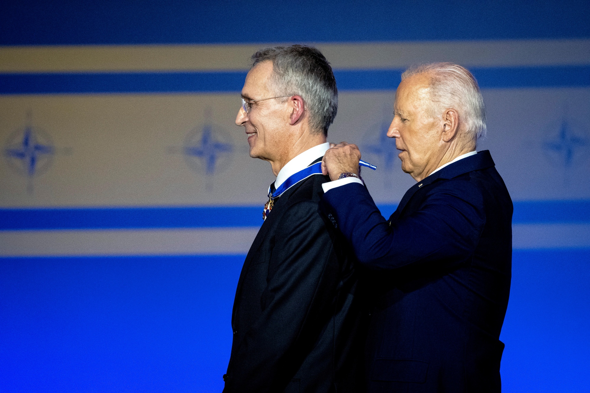 乔·拜登摄影师:Ting Shen/Bloomberg他还试图在北约领导人面前表现出色,周二发表了慷慨激昂的讲话,赞扬了这个联盟,并惊讶地授予即将卸任的秘书长延斯·斯托尔滕贝格总统自由勋章,这是美国最高的民事荣誉。佩洛西称赞拜登的讲话“精彩”。