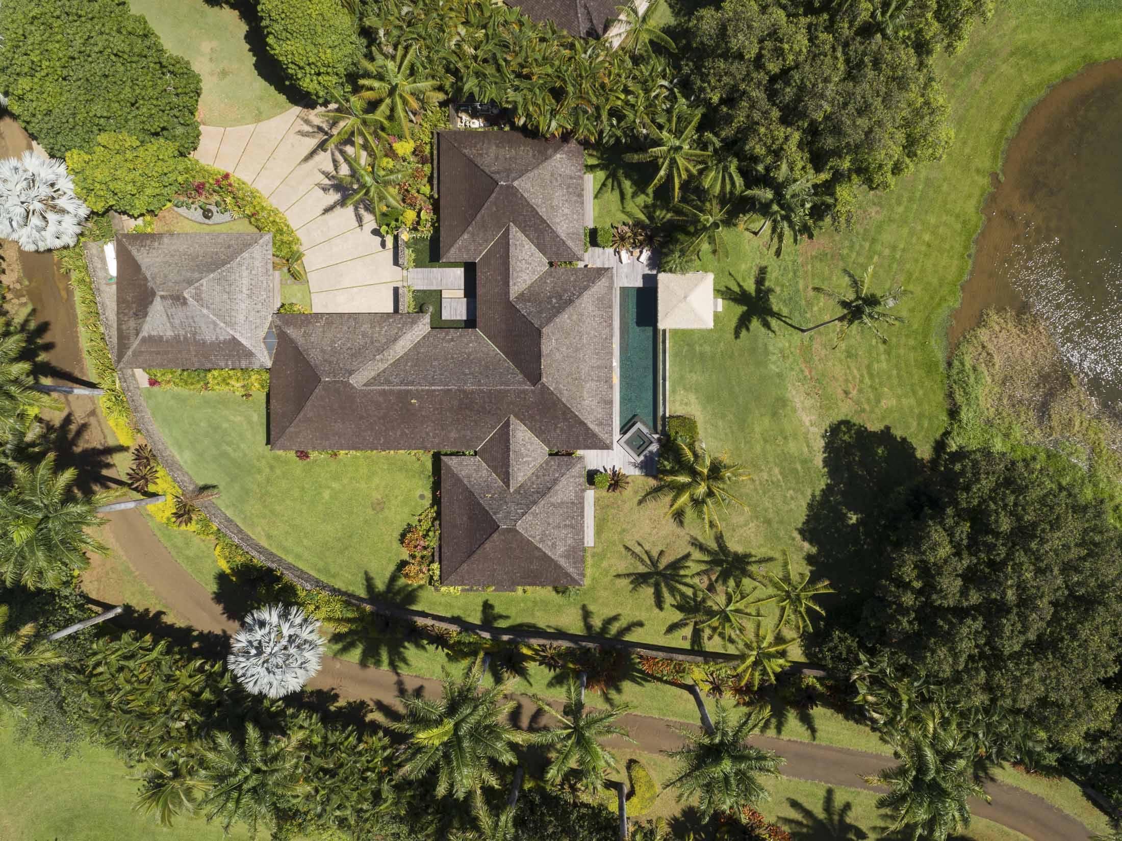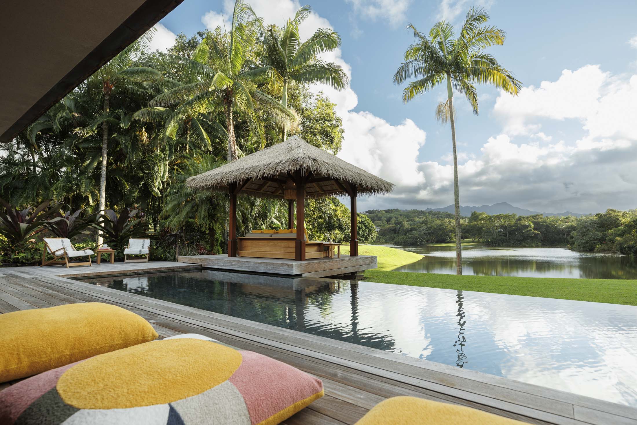 泳池俯瞰着一片湖泊。摄影师:盖尔斯顿·德怀特但现在,诺斯发现自己越来越被欧洲吸引。“我们在法国有家人,他们并不一定处于他们的完美、年轻的岁月,”他说。“我们需要更靠近他们。” 因此,他将房子列出,售价为1010万美元,由夏威夷生活的艾米·弗雷泽代理。