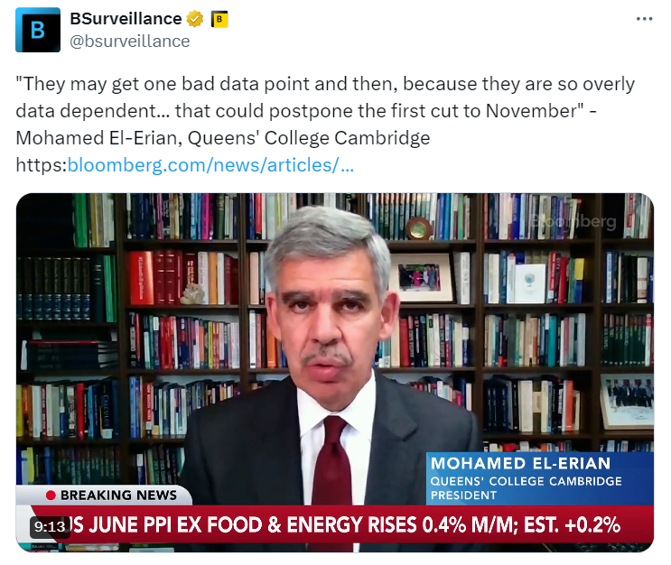 穆罕默德·埃尔-埃里安从本周的数据中得出两个结论。需求下降到公司不再有能力大幅提高价格的程度。与此同时,在输入价格仍在上涨的世界中,他们正面临着经营成本上升的问题。