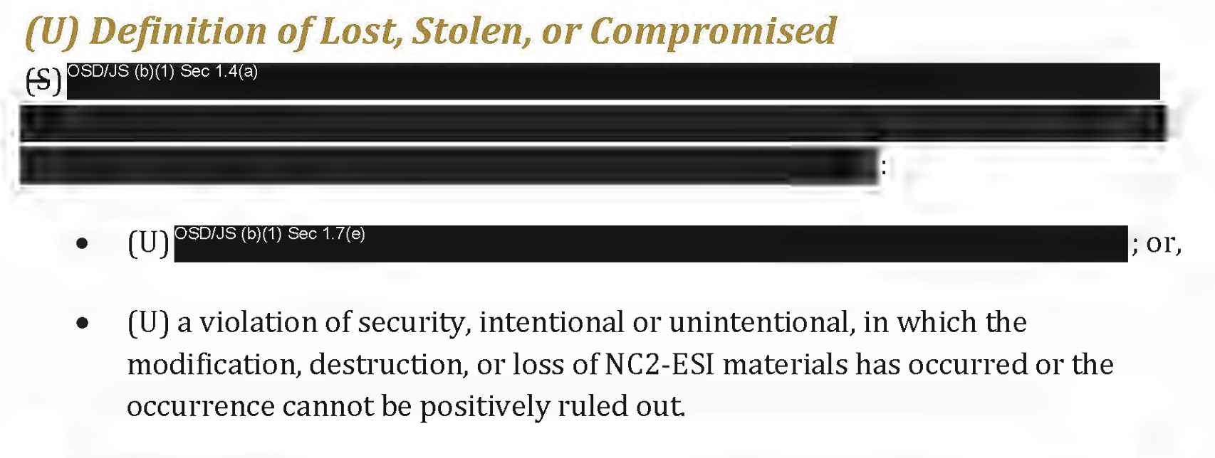 甚至国防部关于“丢失、被盗或泄露”的一面定义也被编辑了。
