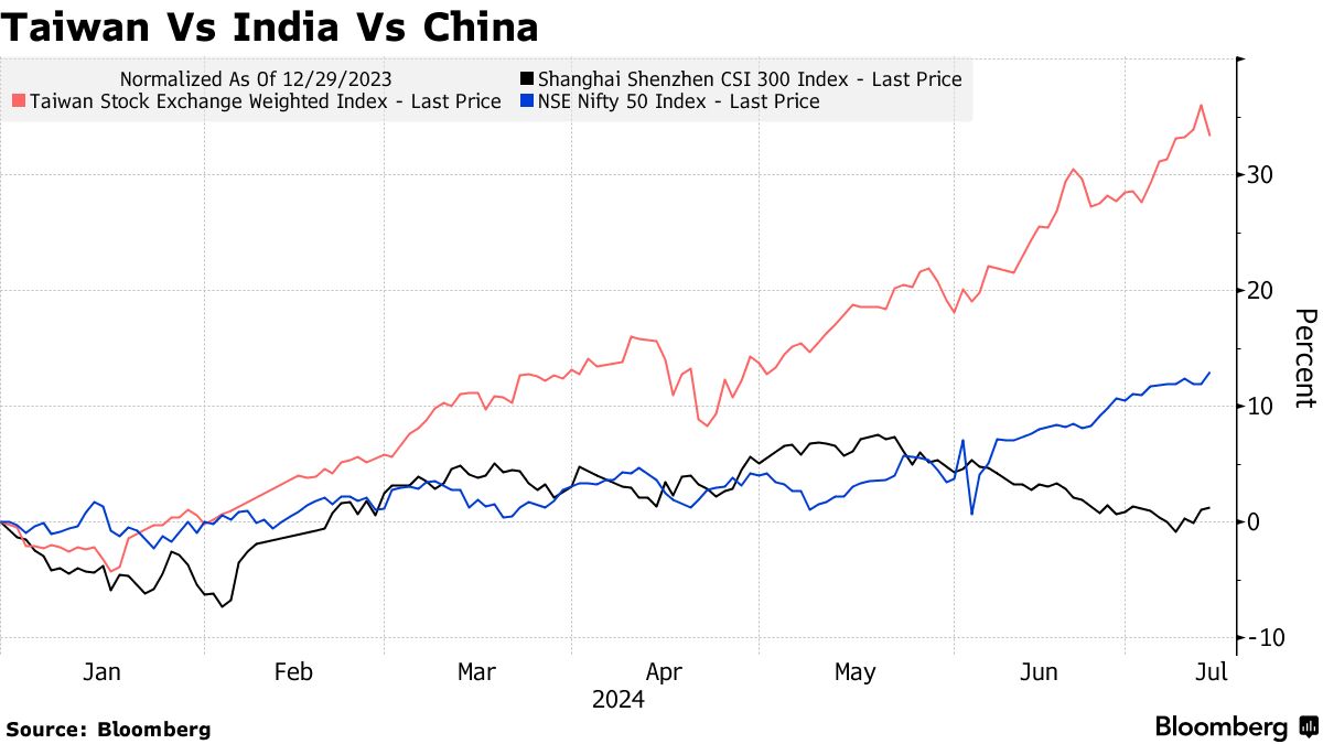 台湾、印度威胁中国在新兴市场股票投资组合中的首位地位 - 彭博社