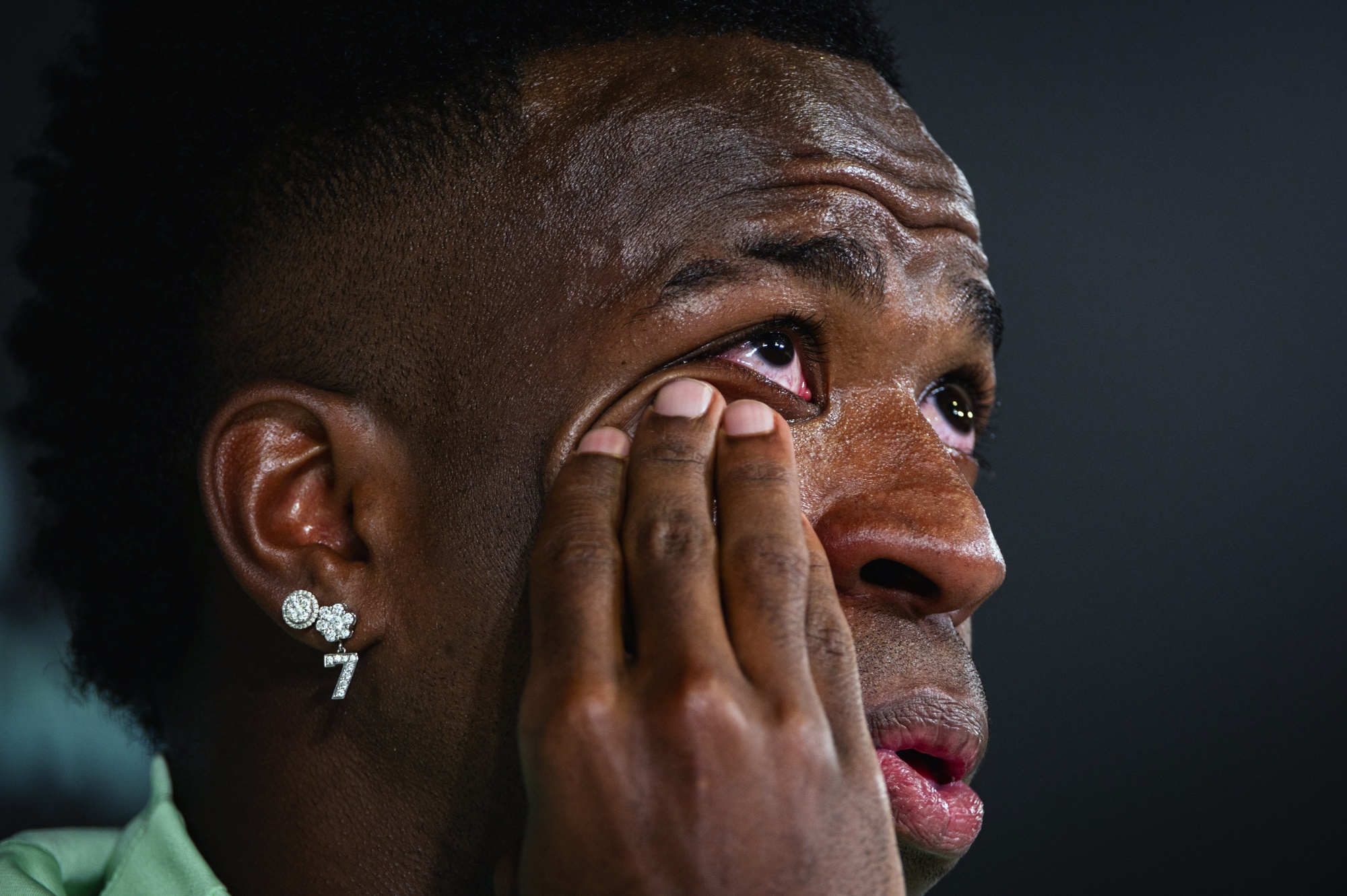 Junior在三月份马德里举行的新闻发布会上谈论种族主义。摄影师:Alberto Gardin/Eurasia Sport Images/Getty Images“联赛存在问题——对于这些种族主义事件,对我来说,他们必须停止比赛,”Vinicius的教练卡洛·安切洛蒂在瓦伦西亚的一场比赛后说道。在英国,足球界也希望得到当局更多支持。赖特表示,他每天在社交媒体上都受到恶劣的种族主义辱骂。