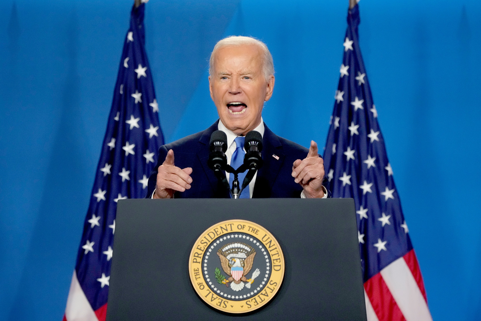 乔·拜登总统在白宫罗斯福房间,7月14日。