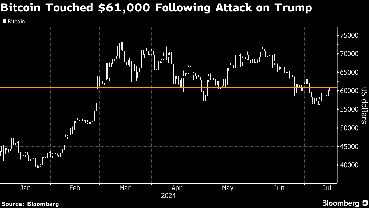 - 比特币达到6万美元,特朗普遭枪击提振连任几率