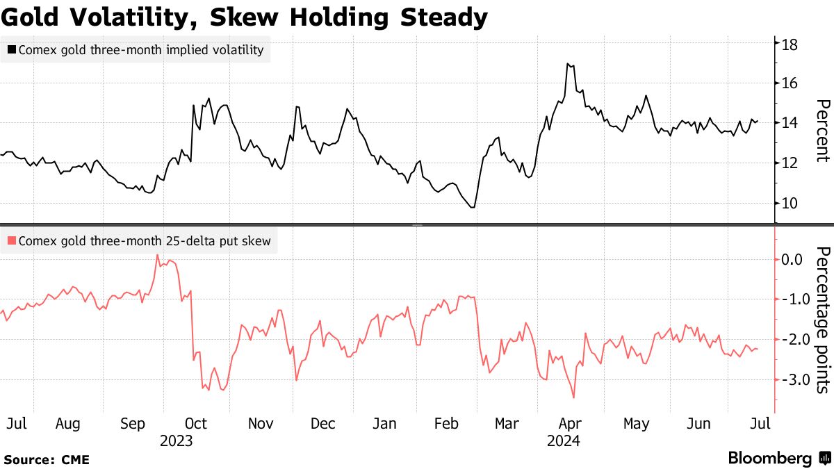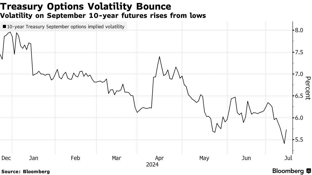 2024年上半年一直很平静的期权市场在周一早些时候显示出很少受到前总统唐纳德·特朗普失败的暗杀企图的影响迹象,10年期国债波动率略有上升,VIX期货下跌,而黄金和美元变化不大。