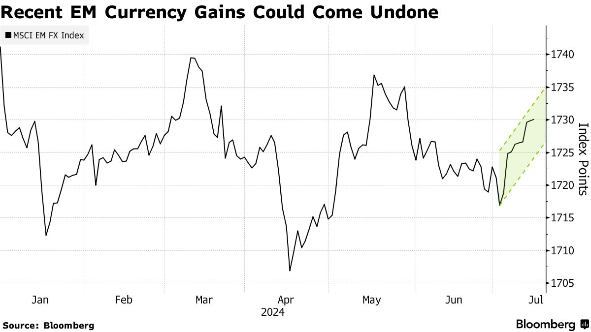 在特朗普上周末遭遇暗杀未遂后,韩元在亚洲领跌,这提高了他赢得总统大选的几率。印尼卢比和泰国铢连续八天的涨势被打断,而马来西亚林吉特也从一月份的最高水平下滑。