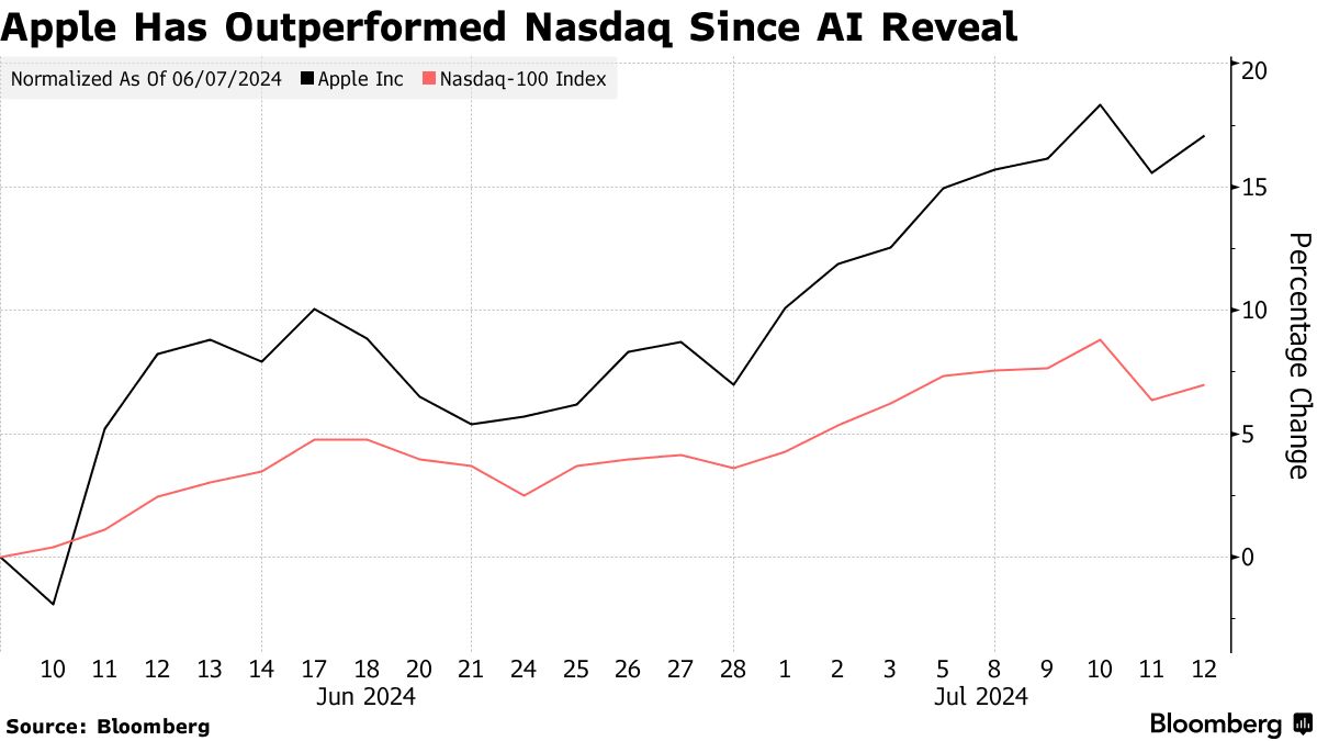 苹果公司股价在纽约时间上午7点的盘前交易中上涨了1.9%,至234.90美元。截至上周五收盘,自公司推出苹果智能以来,股价已上涨了17%,超过了纳斯达克100指数同期的7%涨幅。