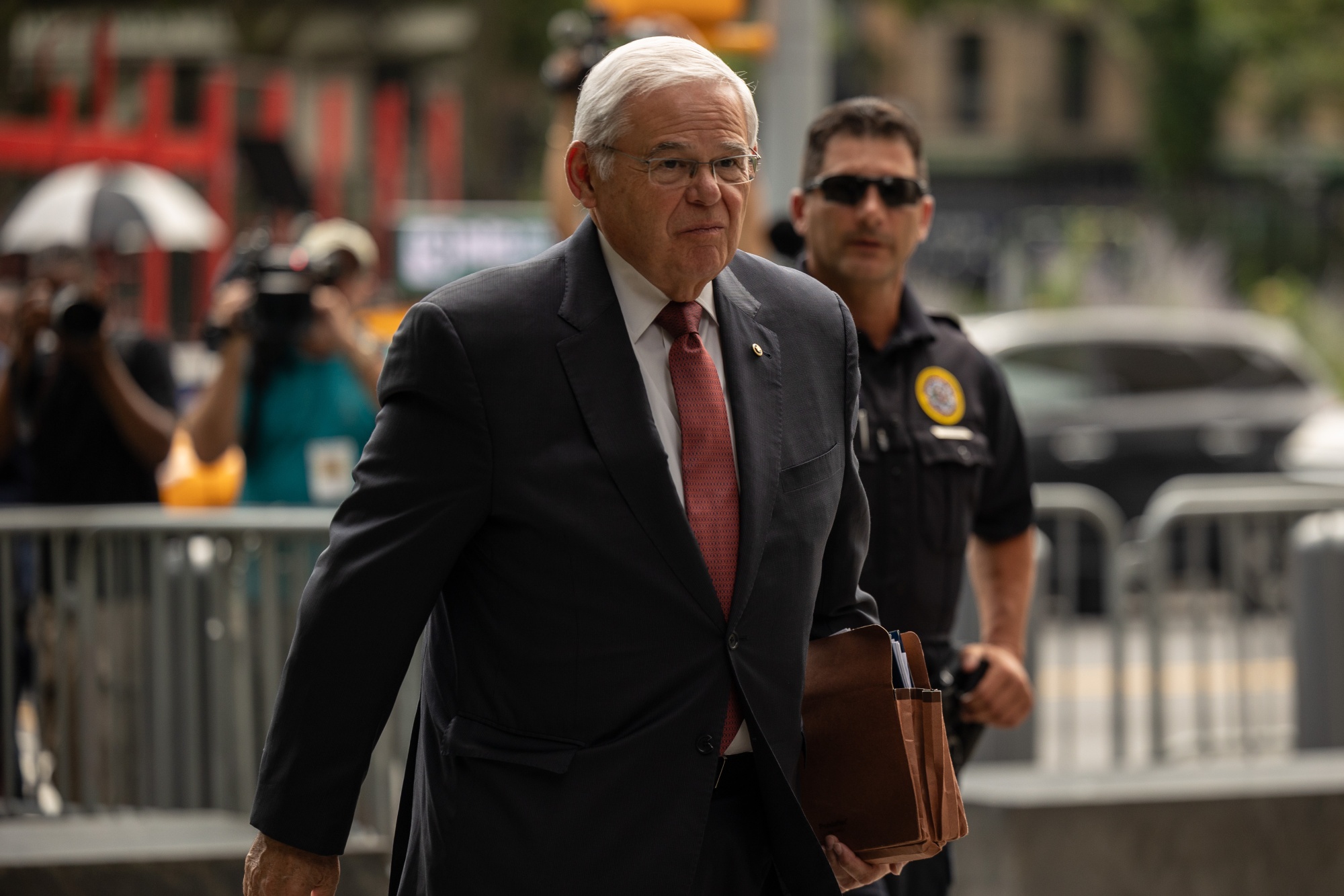 鲍勃·梅嫩德斯于7月15日抵达纽约联邦法院。