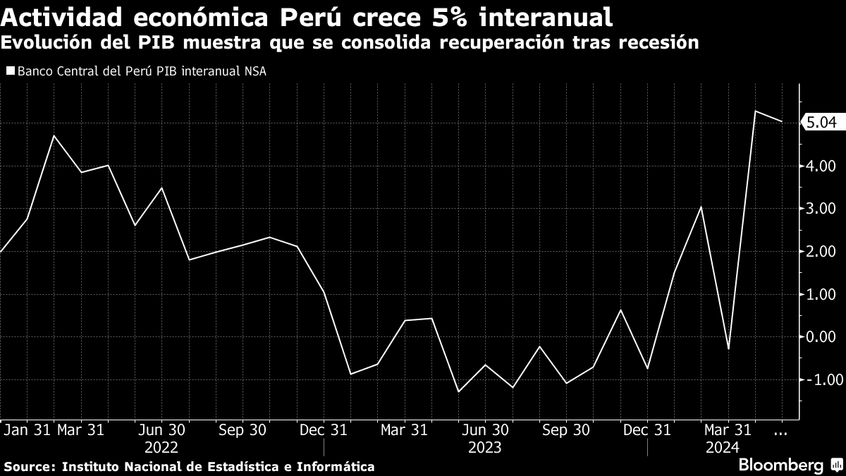 秘鲁经济在五月份增长超出预期,连续第二个月增长,巩固了去年衰退后的复苏。