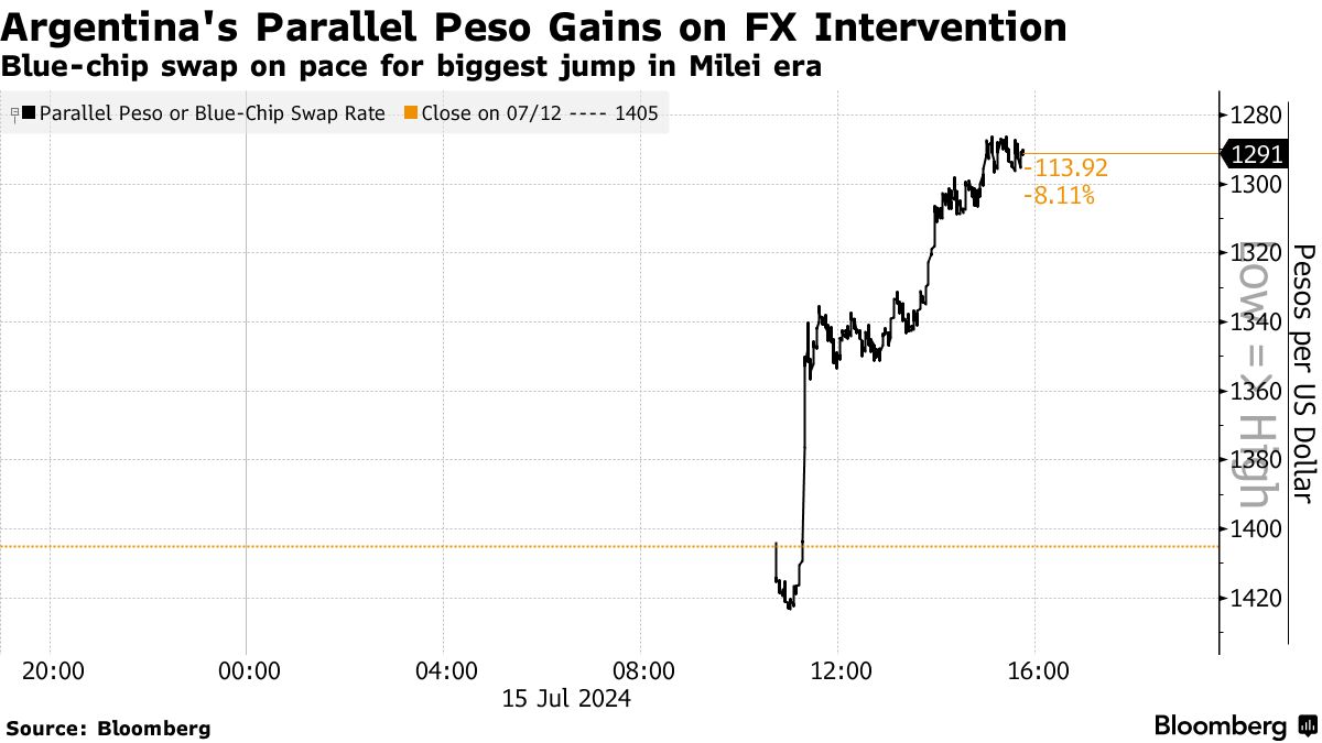 阿根廷平行比索在Milei开始干预下走强-彭博报道