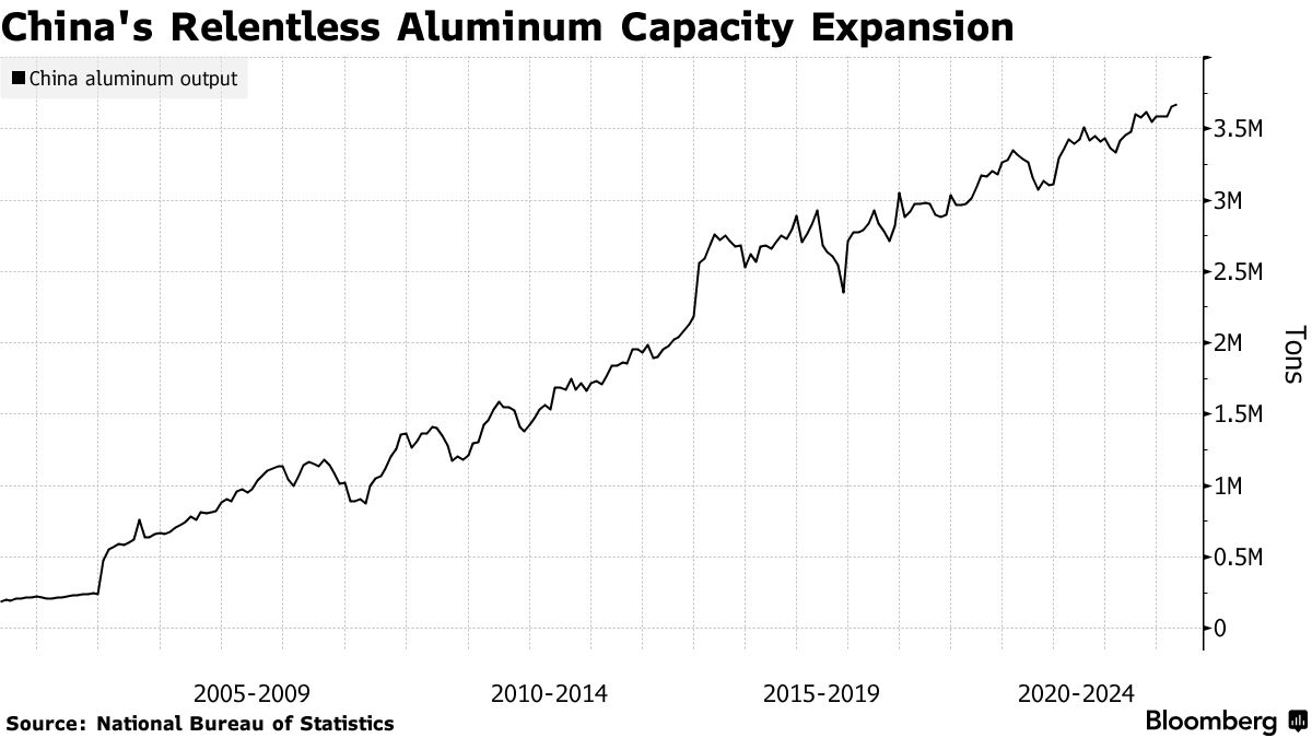 根据周一发布的数据,中国铝产量连续第二个月攀升至创纪录高位,受益于提高的精炼利润。上海期货交易所的铝库存也上升,这是市场供应过剩的另一个指标。