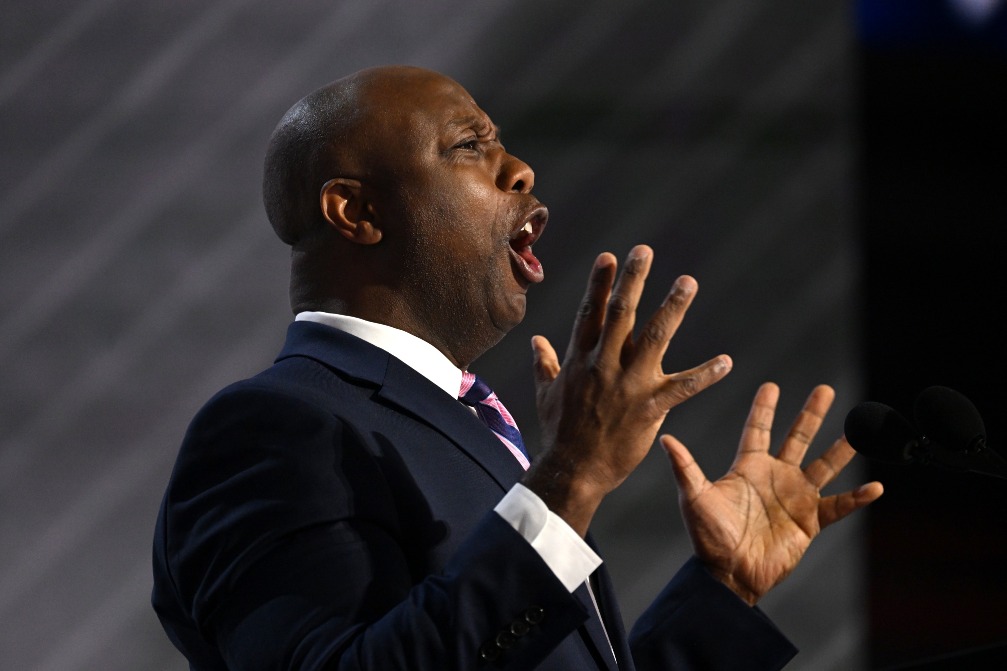 蒂姆·斯科特在共和党全国代表大会上发表讲话。摄影师:维克多·J·布鲁/彭博社在大会期间播放的广告宣传了特朗普免除小费税的承诺,这一政策预示着将吸引年轻选民和有色人种。这个不征税小费的想法引起了在大会大厅聚集的代表们的热烈掌声。