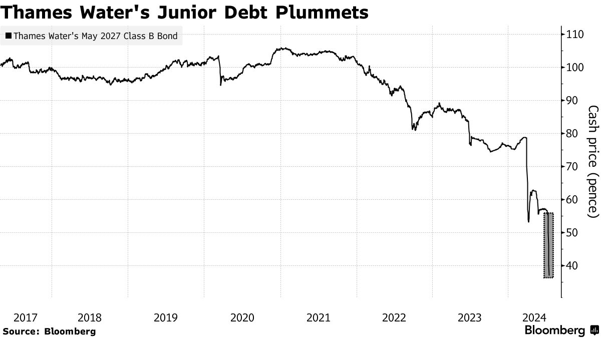 泰晤士水务公司的次级债券下跌,严重减记风险增加 - 彭博社