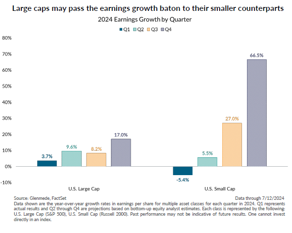 随着其他493家公司自2022年以来首次预计第二季度将实现正增长,这张Glenmede图表使用FactSet数据显示最小的公司已经准备好接过权力: