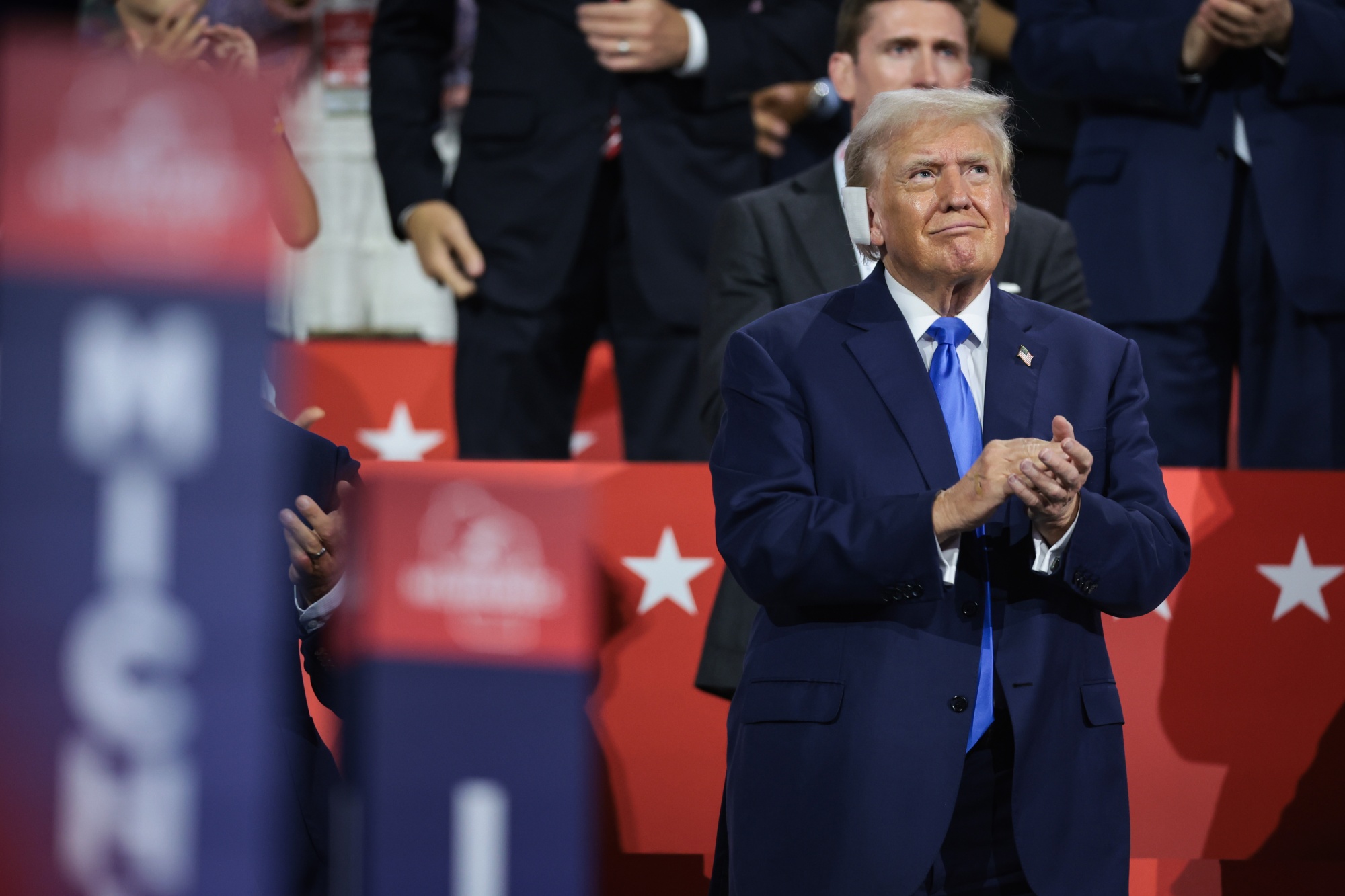 唐纳德·特朗普在威斯康星州密尔沃基费泽维尔论坛参加共和党全国代表大会,时间是7月16日。