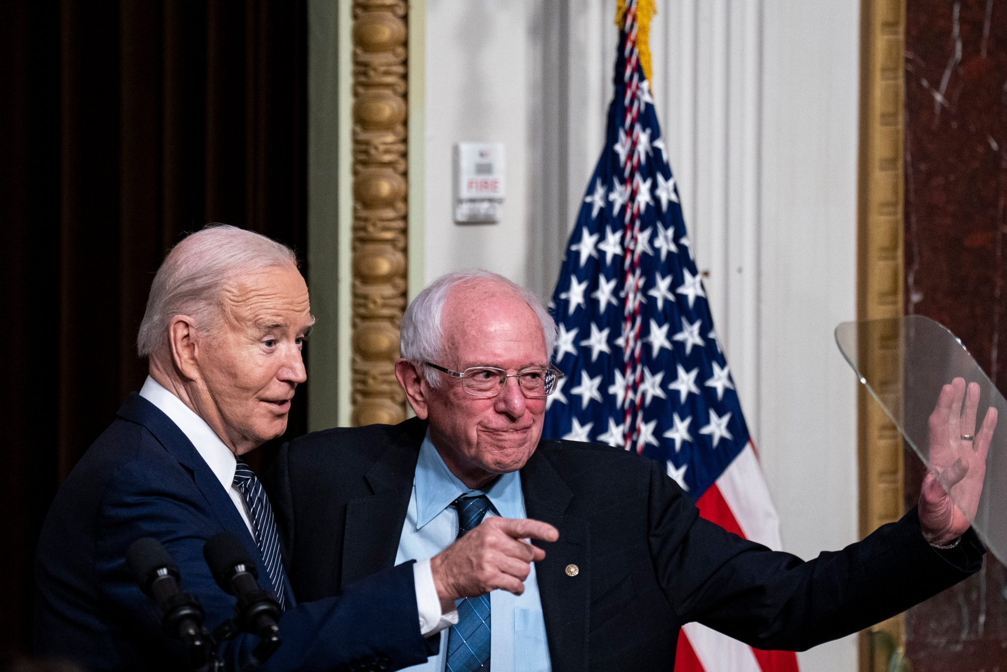 总统乔·拜登,左,和参议员伯尼·桑德斯摄影师:Al Drago/Bloomberg在上周五底特律的竞选集会中,拜登概述了其他进步优先事项,如为有组织劳工提供新的保护、民事和选举权立法、永久儿童保育税收减免、降低药品价格和扩大福利计划。