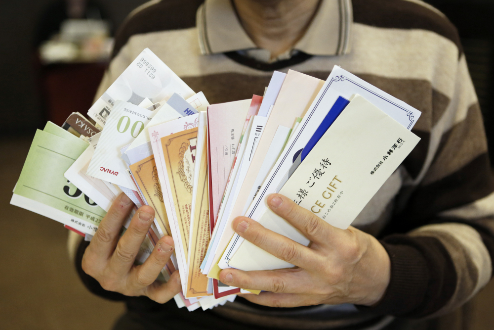 西澤利亞并不是第一家削减股东福利的公司,但它是最引人注目的。被称为“待遇”(宽松地意味着款待或特殊待遇)的系统类似于奖励卡:每持有一捆股票,投资者就会获得一份年度赠品,从优惠券到大米袋。这种做法并不局限于日本——伯克希尔·哈撒韦公司向股东提供盖科保险政策的折扣,但在日本已经达到了最终的演变。