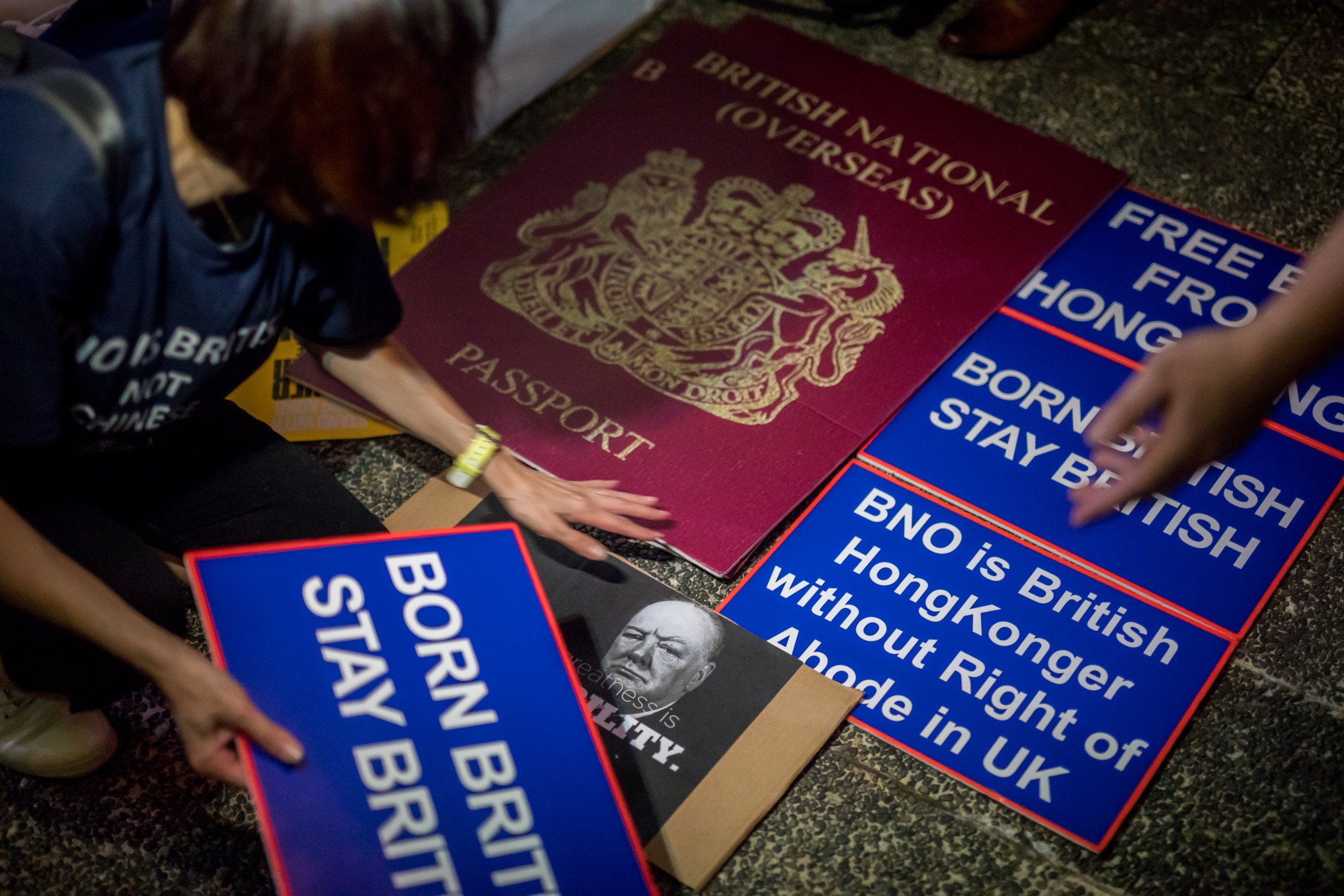 示威者在2019年香港集会期间准备标语。摄影师:Paul Yeung/BloombergChi,52岁,在2022年8月离开香港,正试图在曼彻斯特附近的圣海伦斯村购买一栋房子。但他用于首付的约9万英镑被困在他在宏利公司的香港养老金账户中。