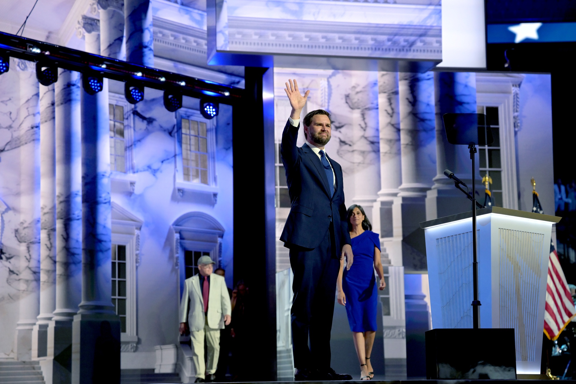 参议员JD Vance,唐纳德·特朗普的竞选搭档,表示总统乔·拜登几十年来一直让美国失望。他在密尔沃基的共和党全国代表大会上发表讲话。