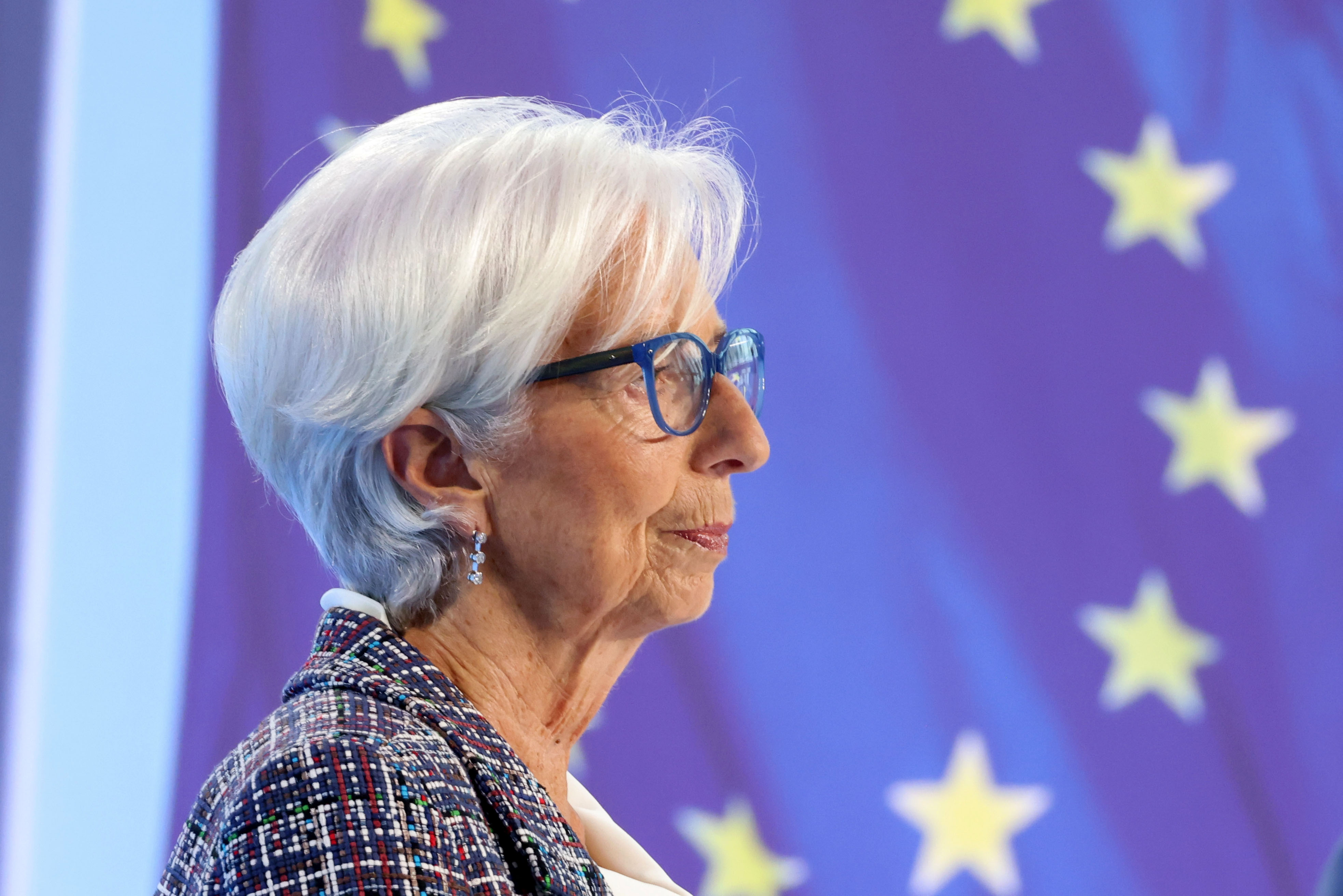 克里斯汀·拉加德在7月18日于德国法兰克福举行的利率决策新闻发布会上。