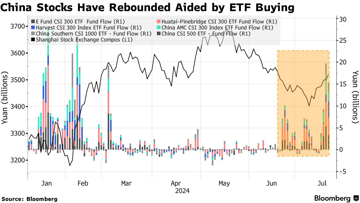 这些下跌已经有所减少,得益于一些被所谓的国家队青睐的ETF的资金流入。