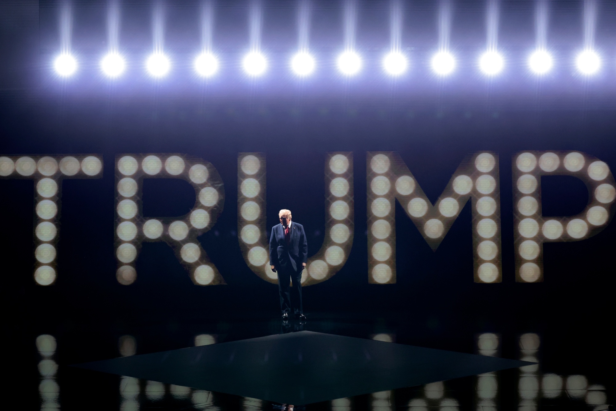 唐纳德·特朗普在威斯康星州密尔沃基举行的共和党全国代表大会(RNC)上,摄于7月18日。摄影师:汉娜·贝尔/彭博社民主党人将在一个月后举行他们自己的提名大会,党内官员已经表示,他们可能会在8月初就确定拜登的候选人位置。