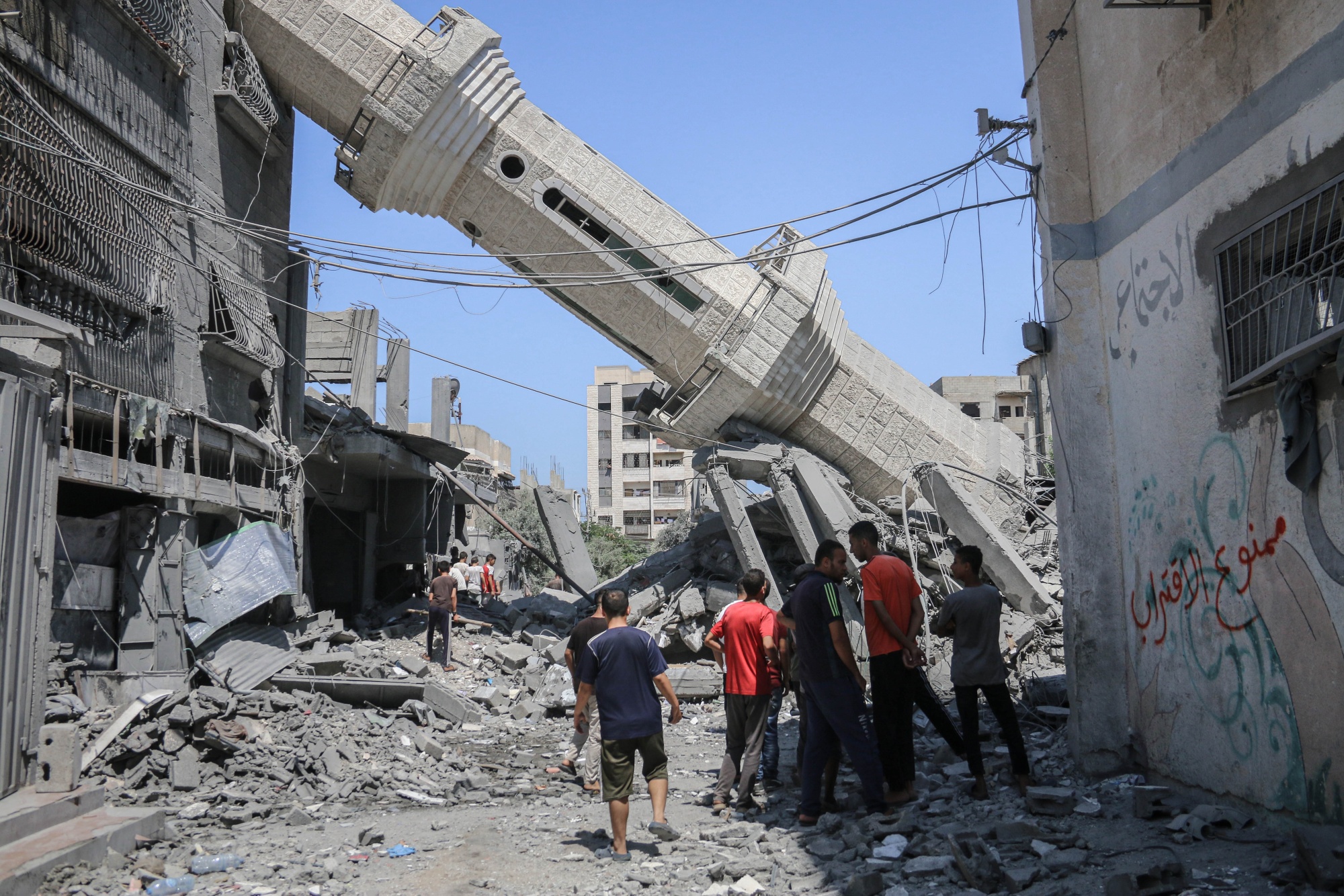 巴勒斯坦人在中部加沙的Nuseirat难民营遭到以色列空袭后检查被摧毁的Abdullah Azzam清真寺。摄影师:Ahmad Salem/Bloomberg 小测验(不准作弊!)哪位前法国总统从未兑现承诺在塞纳河中游泳以展示其清洁程度?将您的答案发送至[email protected]。