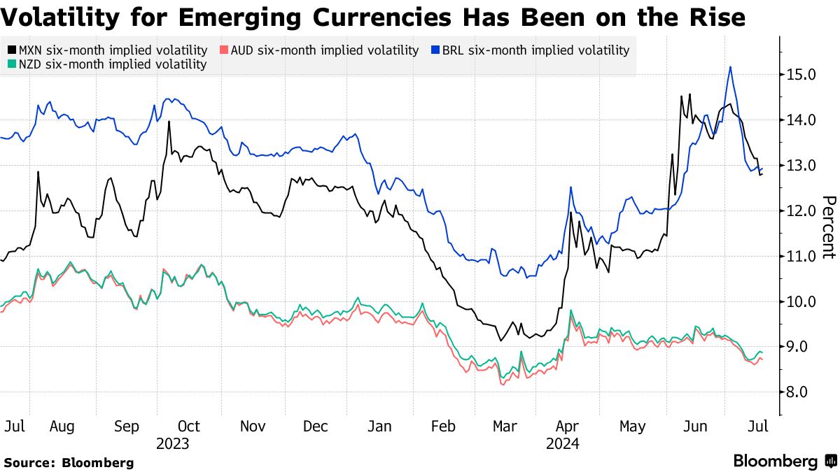 在过去两年中,像墨西哥比索和巴西雷亚尔这样的货币获得了超额回报,投资者正在转向风险较小的选择,如澳大利亚和新西兰元进行套息交易,这涉及借入低收益国家的货币以购买高收益货币。