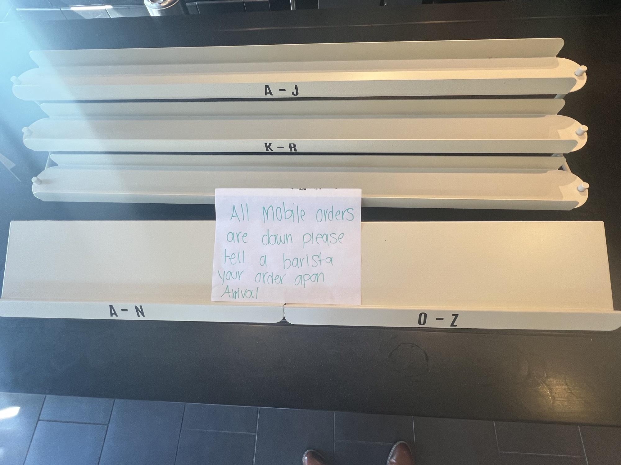 Joe Colangelo,Boxcar的首席执行官,该公司为新泽西州通勤往曼哈顿的人提供豪华巴士服务,估计他看到了大约100杯手写标签的饮料堆在星巴克柜台上,当他到达新泽西州克兰福德的一个地点时。他去拿一杯香草拿铁给他的妻子,虽然移动订单已经通过,但咖啡师们没有收到这些订单,不得不手动处理所有订单。工作人员要求顾客排队,并在收银台上直接展示他们的订单,然后咖啡师们大声告诉他们的同事并手动处理订单。
