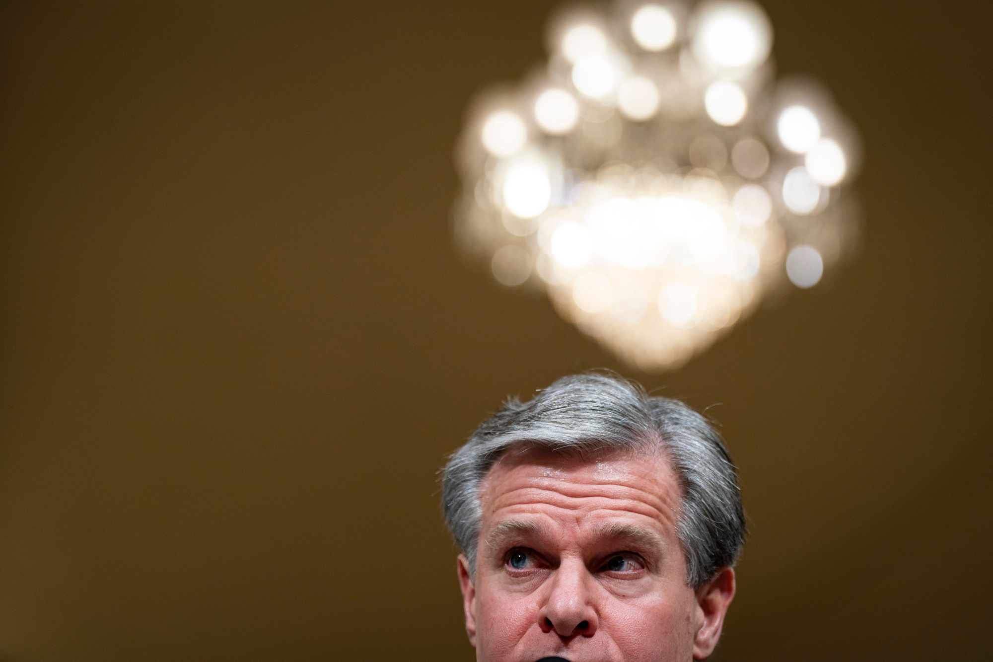 克里斯托弗·雷,美国联邦调查局(FBI)局长,在2023年11月15日星期三在华盛顿特区的国会国土安全委员会听证会上。摄影师:Al Drago/BloombergFBI被授予访问未发布的技术,以便访问被确认为前总统唐纳德·特朗普枪手的手机,据熟悉调查的人士透露。