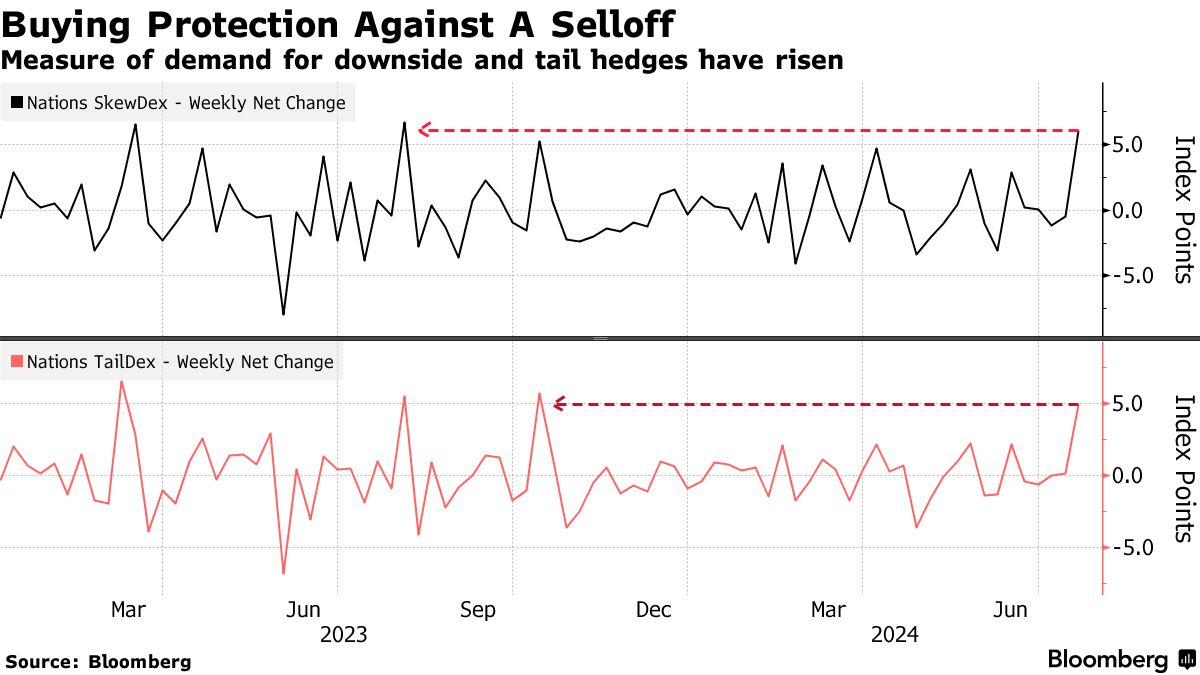 随着选举周期正式开始,对于市场崩盘时的投资组合保险需求激增,所谓的尾部风险合约的成本也创下了全年最大涨幅。