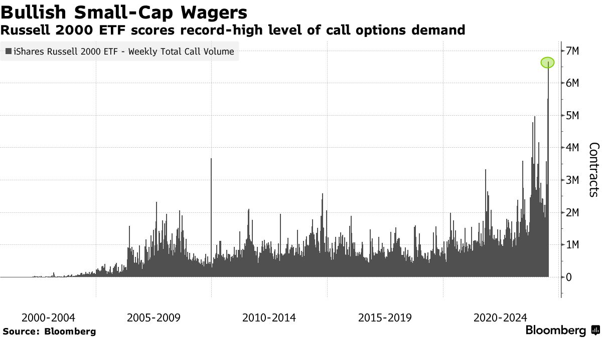 希望利用这种交易的投资者截至周三将近100亿美元资金流入小盘基金,创下有史以来第二高纪录,与此同时,对跟踪Russell 2000指数的最大ETF的需求创下历史新高。