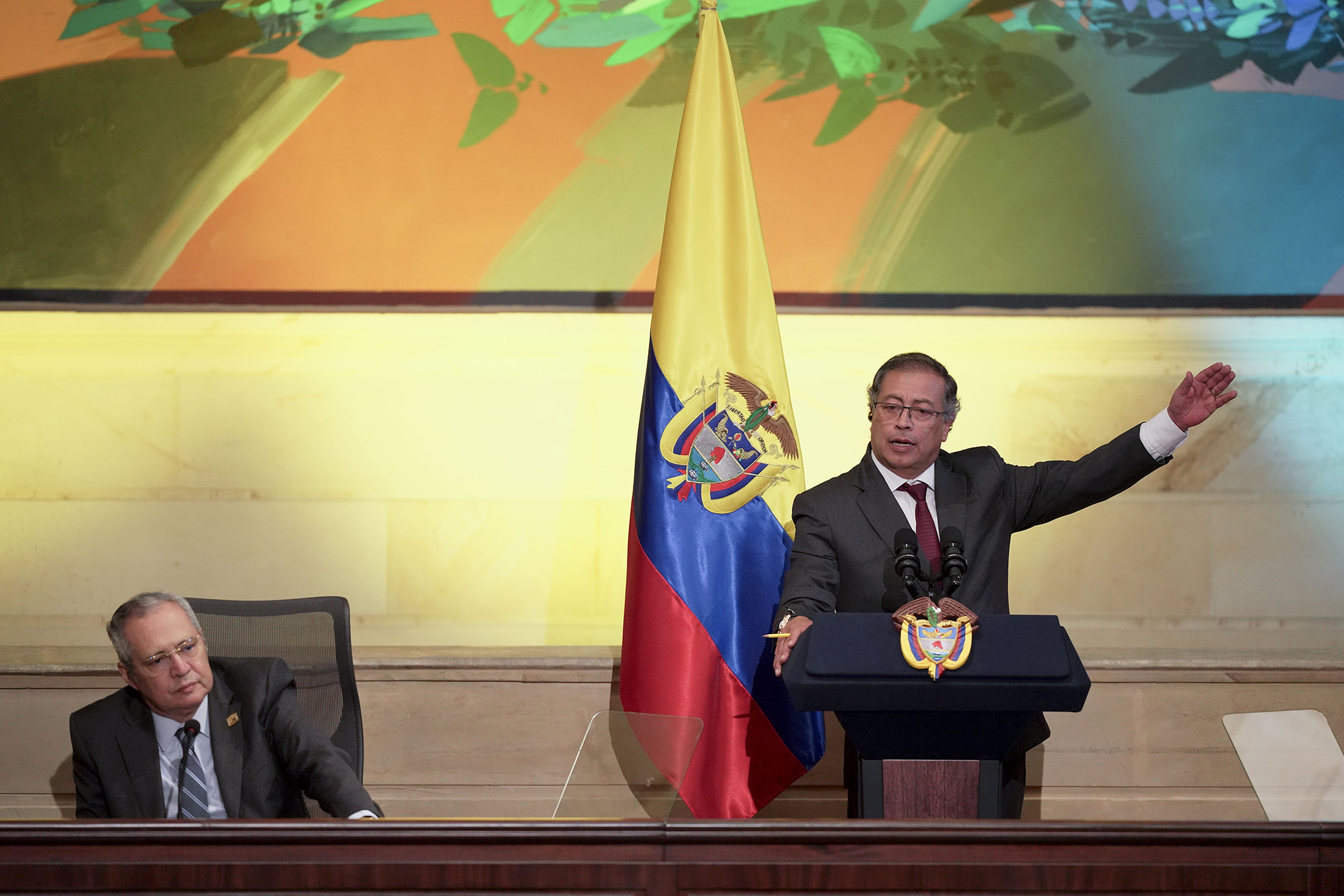 古斯塔沃·佩特罗在7月20日的波哥大,哥伦比亚新一届国会年度开幕式上发表讲话。摄影师:伊万·瓦伦西亚/AP照片