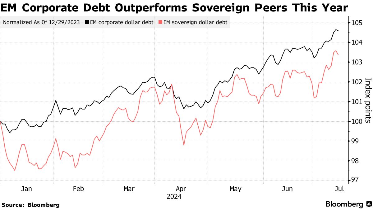 从 Aegon Asset Management 到 Lazard Asset Management 和 T. Rowe Price 的资金经理们都在推崇来自新兴市场企业的高收益、以美元计价的债券。他们表示,较短的期限和信用质量往往超过了它们所在国家的信用质量,这使得这种交易具有吸引力,即使围绕美联储降息时机的不确定性——更不用说美国总统选举——限制了风险资产的普遍上涨。