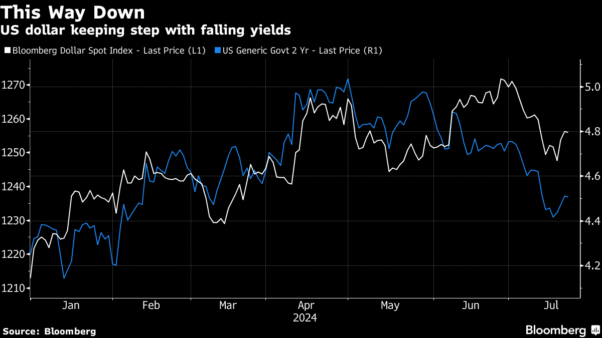 随着乔·拜登退出,美国总统竞选变得不太明朗,可能会对美元前景产生重大影响。但最重要的因素是投资者对美联储的利率走势充满信心,他们相信中央银行将在9月开始降息周期。