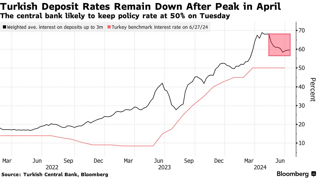 土耳其央行可能会针对过剩流动性采取措施,将主要利率保持在50% - 彭博社