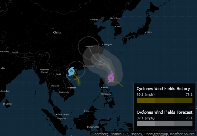 热带风暴 Prapiroon 预计将于周二登陆中国和越南边境附近。另一个系统,Gaemi,已经给菲律宾北部的吕宋岛带来了大雨,可能在接下来的两天穿过台湾,然后横扫中国。