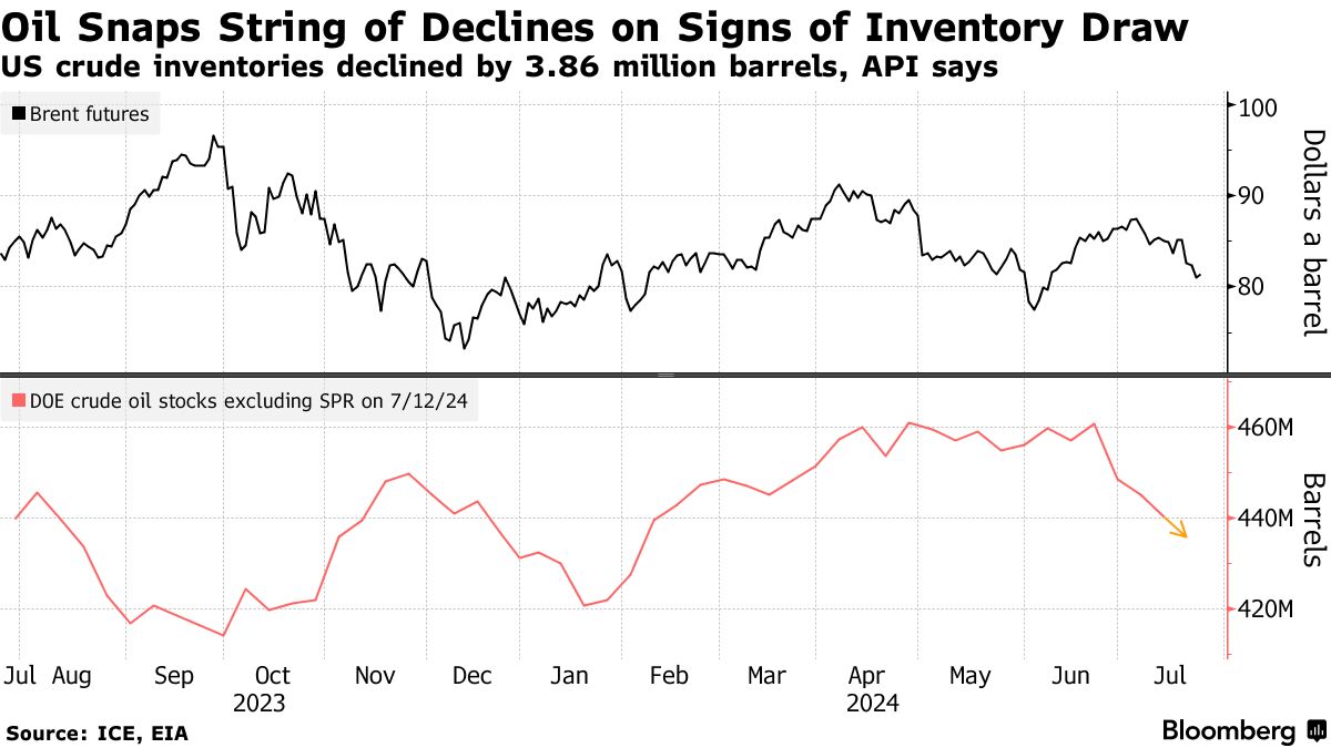 布伦特原油在前三个交易日几乎下跌了5%后,上涨至每桶81美元,而美国基准西德克萨斯中质原油接近77美元。由行业资助的美国石油协会报告称,库存减少了386万桶,库欣(Cushing)的库存也出现下降。