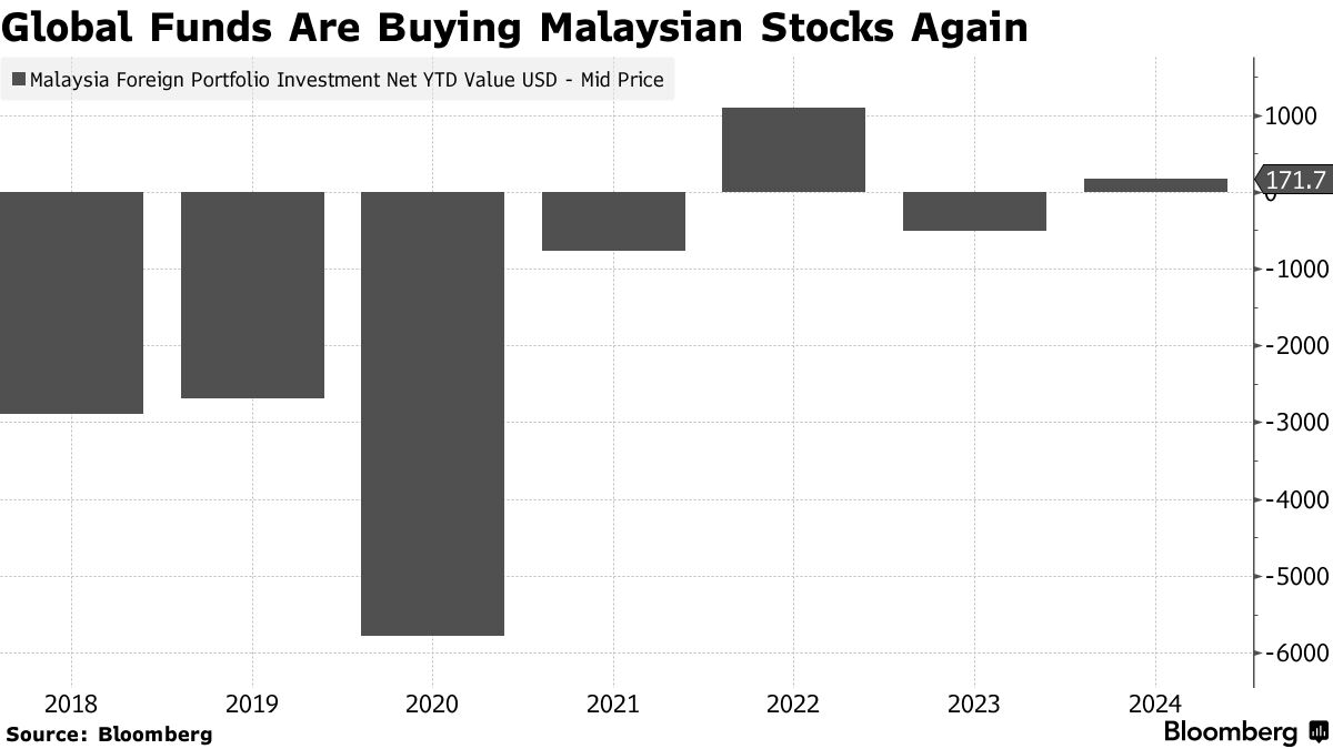 随着安瓦尔·易卜拉欣总理推动政策,促进外国投资进入半导体行业和人工智能数据中心,国际基金今年开始成为股票的净买家。根据彭博社编制的数据,外国投资者在过去六年中净卖出了约115亿美元的持股。
