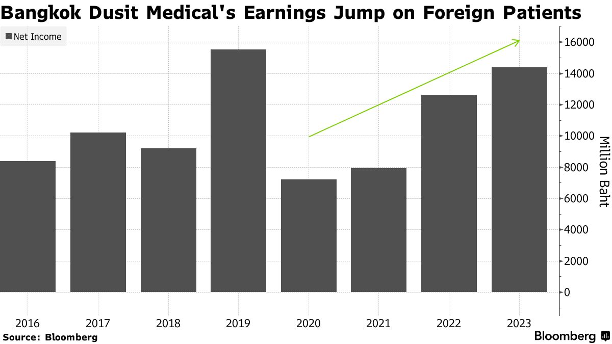 “泰国的生活成本和医疗费用较低,海外市场有很大的增长潜力,” Poramaporn在回应彭博社提问的电子邮件中说道。“我们在普吉岛和芭堤雅等主要旅游目的地的医院受到国际游客的强烈需求。”