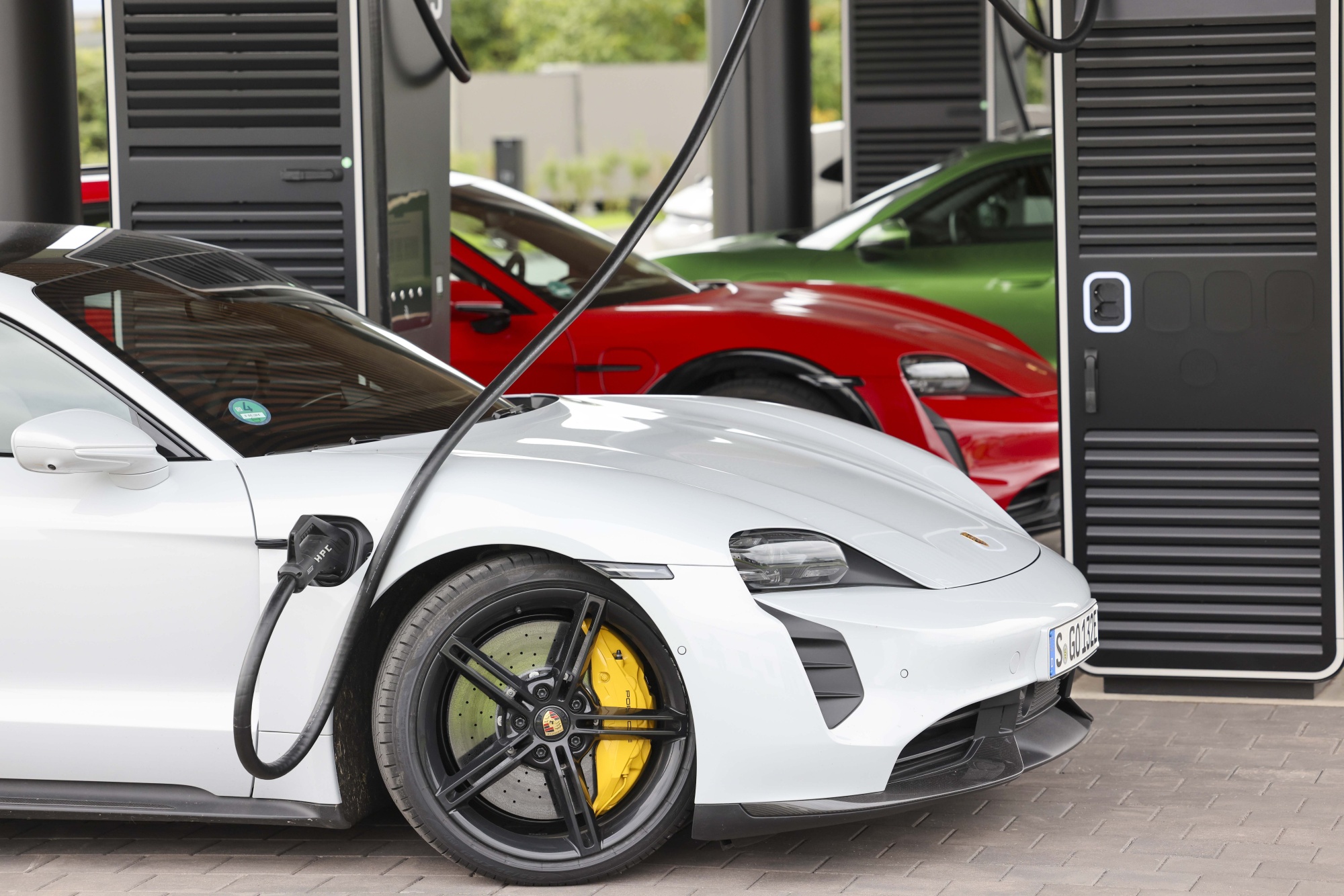 一辆保时捷Taycan电动汽车。摄影师:Alex Kraus/Bloomberg