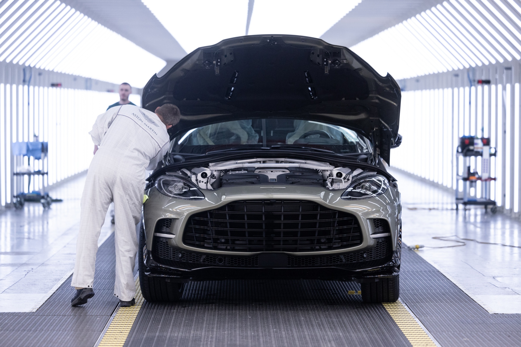 在英国圣艾森的阿斯顿·马丁拉贡达全球控股有限公司工厂,一辆阿斯顿·马丁DBX运动型多用途车。