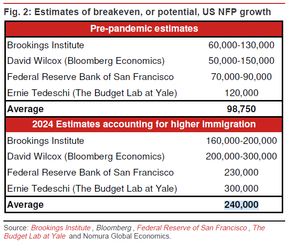 包括彭博社在内的多项研究的平均估计显示,与稳定失业率一致的每月工资增长预期为24万人,野村发现。因此,6月份的20.6万人增长“不应再被视为热门;它甚至可能 偏低。”