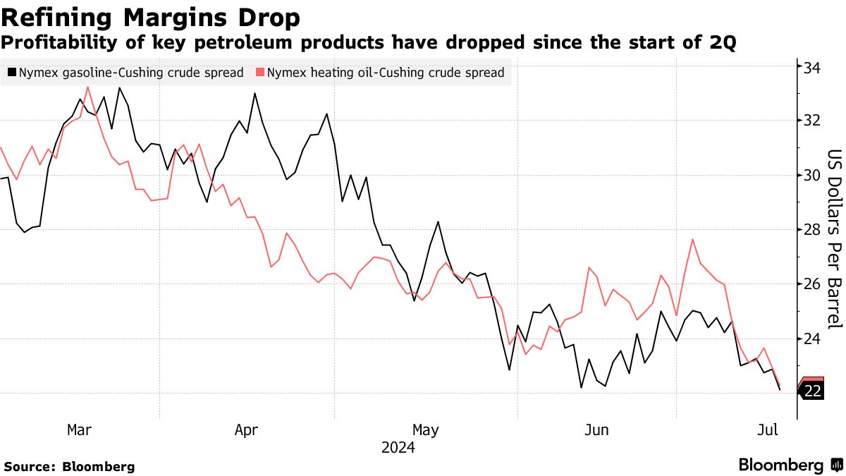“我们的预期是,未来精炼利润率将继续下降,”纽约分析师杰森·加贝尔曼在接受采访时表示。