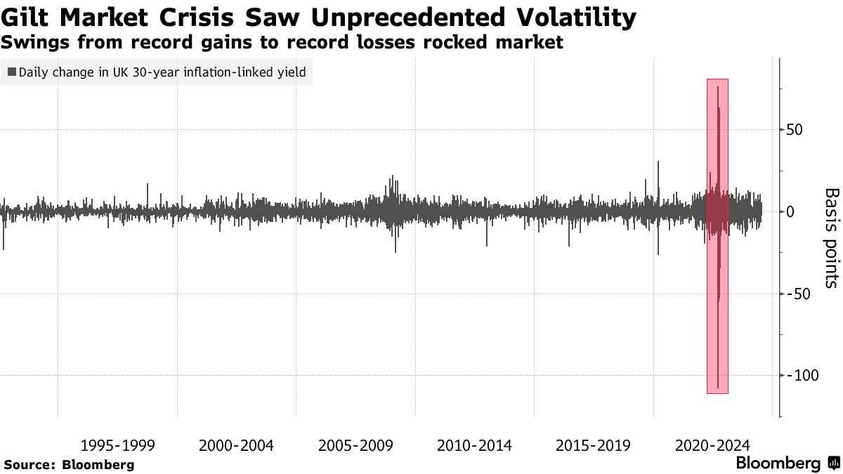 面临来自交易对手的紧急抵押品要求,他们制造了一场迫使卖出的恶性循环,只有BOE通过购买长期国债才 遏制 了崩溃 —— 这是一项非同寻常的措施,当时有可能使其收紧货币政策的努力变得复杂化。
