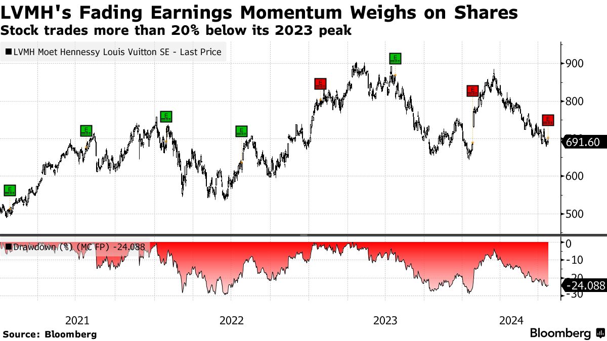 路威酩轩(LVMH)、博柏利(Burberry)、古驰(Gucci)证明最大的品牌也无法免受奢侈品市场萧条的影响 - 彭博社